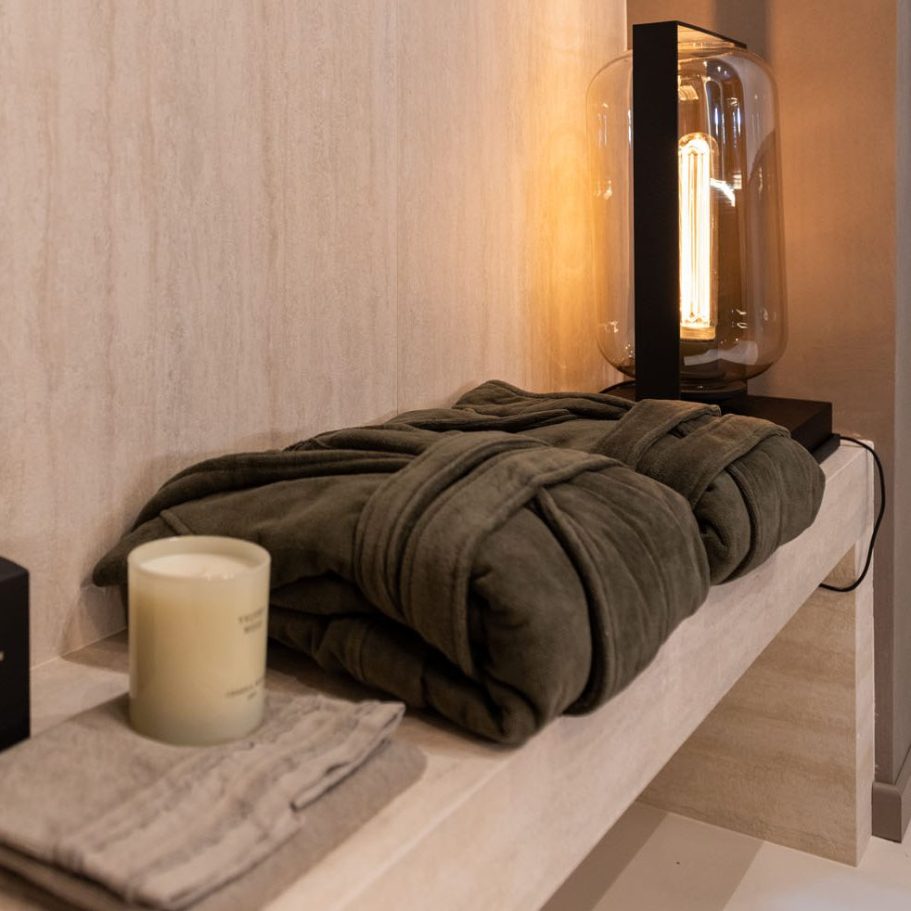 La biofilia è parte integrante di La Salle de Bains e si manifesta fin da questo primo spazio: elementi naturali, materiali materici e luce costruiscono ambienti che migliorano percezione e benessere.