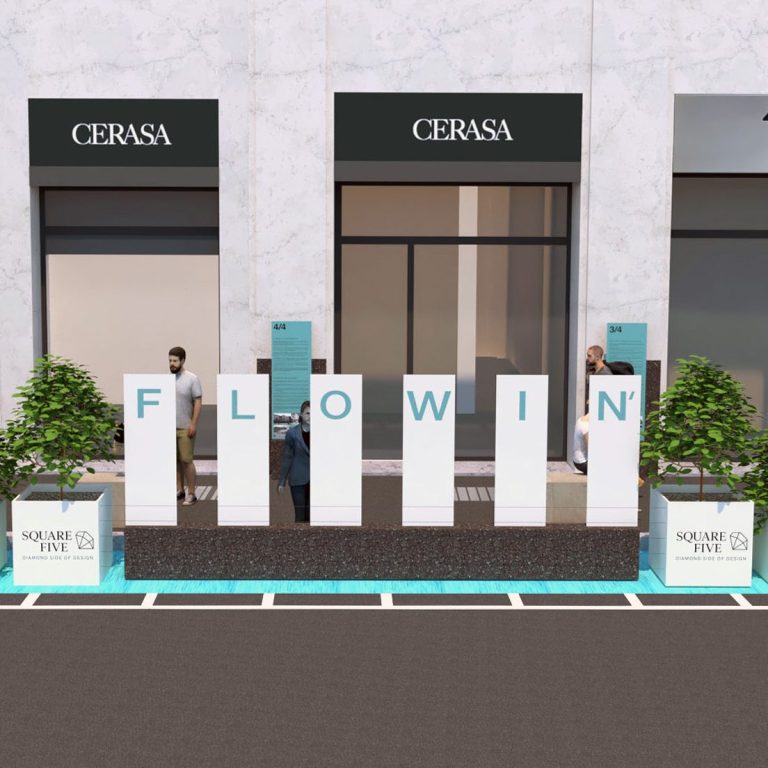 Flowin’ trasforma Via San Clemente in un passaggio dalla città allo showroom, anticipandone l’esperienza.